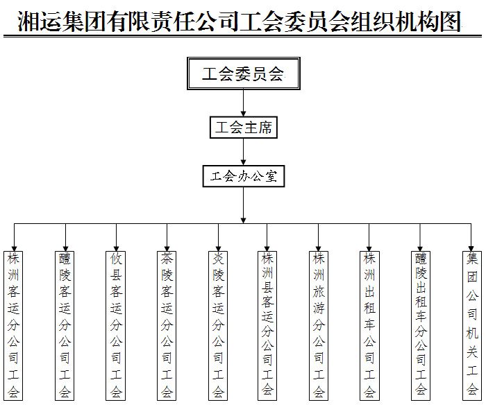 湘運集團有限責任公司系湖南省株洲地區最具規模、舉足輕重的專業化道路運輸龍頭企業,是以運輸產業為主,房地產開發、商貿餐飲等為輔的多元化經營的企業集團。集團公司設工會委員會,下設9個二級工會,現有工會會員1026人,員工入會率達100%。