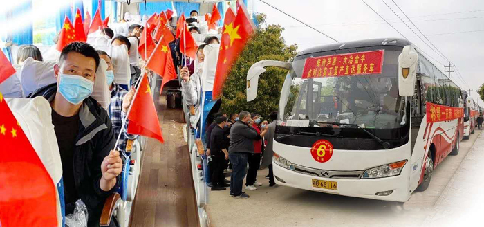 自新冠疫情爆發以來,全國各地學校全面停課,企業全面停業停產,在黨中央的正確領導和強力干預下,新冠疫情得到初步遏制。為了響應政府號召,加快復工復產步伐,切實解決復工人員返崗難的問題,確保疫情防控和復產復工兩不誤,自2月底開始,湘運集團采用“點對點”一站式直達運輸服務方式,調派客運車輛分10批100余臺次,先后分別赴淥口、醴陵、攸縣、茶陵、炎陵、瀏陽、重慶、黃花機場、湖北等地共接送返崗務工人員2000余人。由于防控程序規范,運輸服務到位,不僅得到了各級領導和相關部門的充分肯定,而且得到了復工企業和務工人員的一致好評。